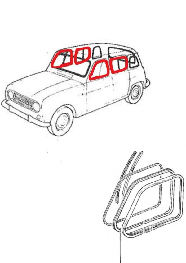 Joints des quatre vitres fixes pour modèle à encadrement métallique Renault 4L