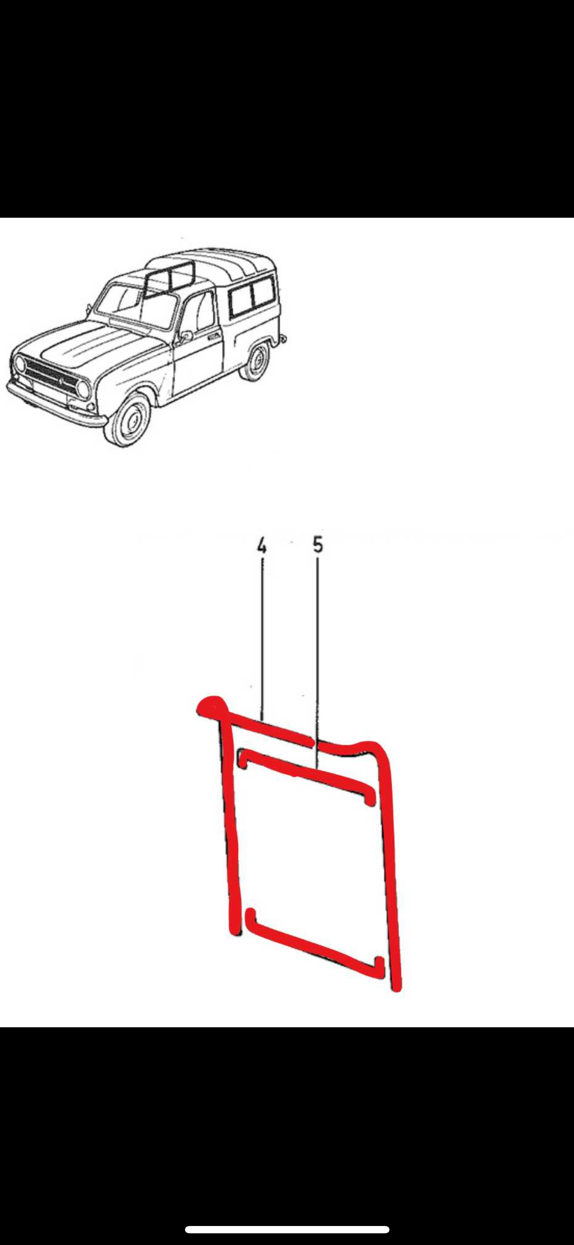 Joints des deux vitres de custodes arrière petites modèles Renault 4LF6