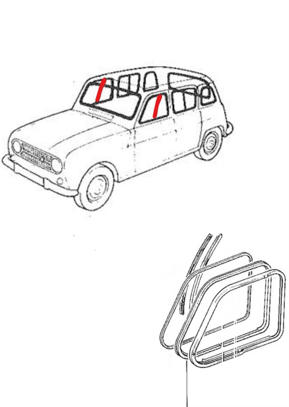 Joints lécheurs verticaux des deux vitres avant Renault 4LF4